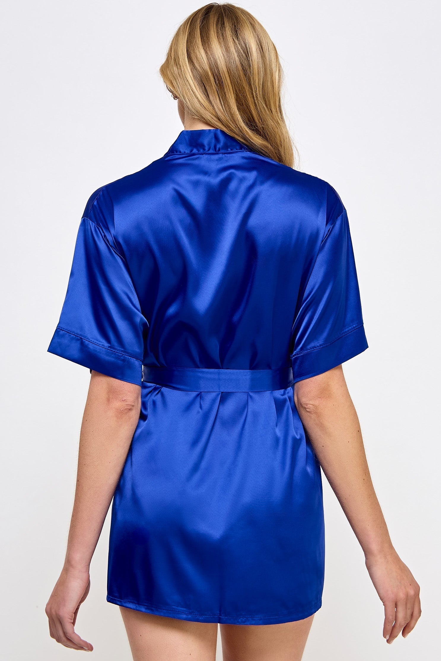 The Satin Lightweight Robe is the epitome of elegance and comfort, designed for those who appreciate the finer things in life. Crafted from premium satin, this robe boasts a sleek and smooth texture that feels luxurious against the skin. Its lightweight design ensures breathability and ease of movement, making it perfect for lounging in style or preparing for a day or evening out. Short length Open front Matching front tie satin belt