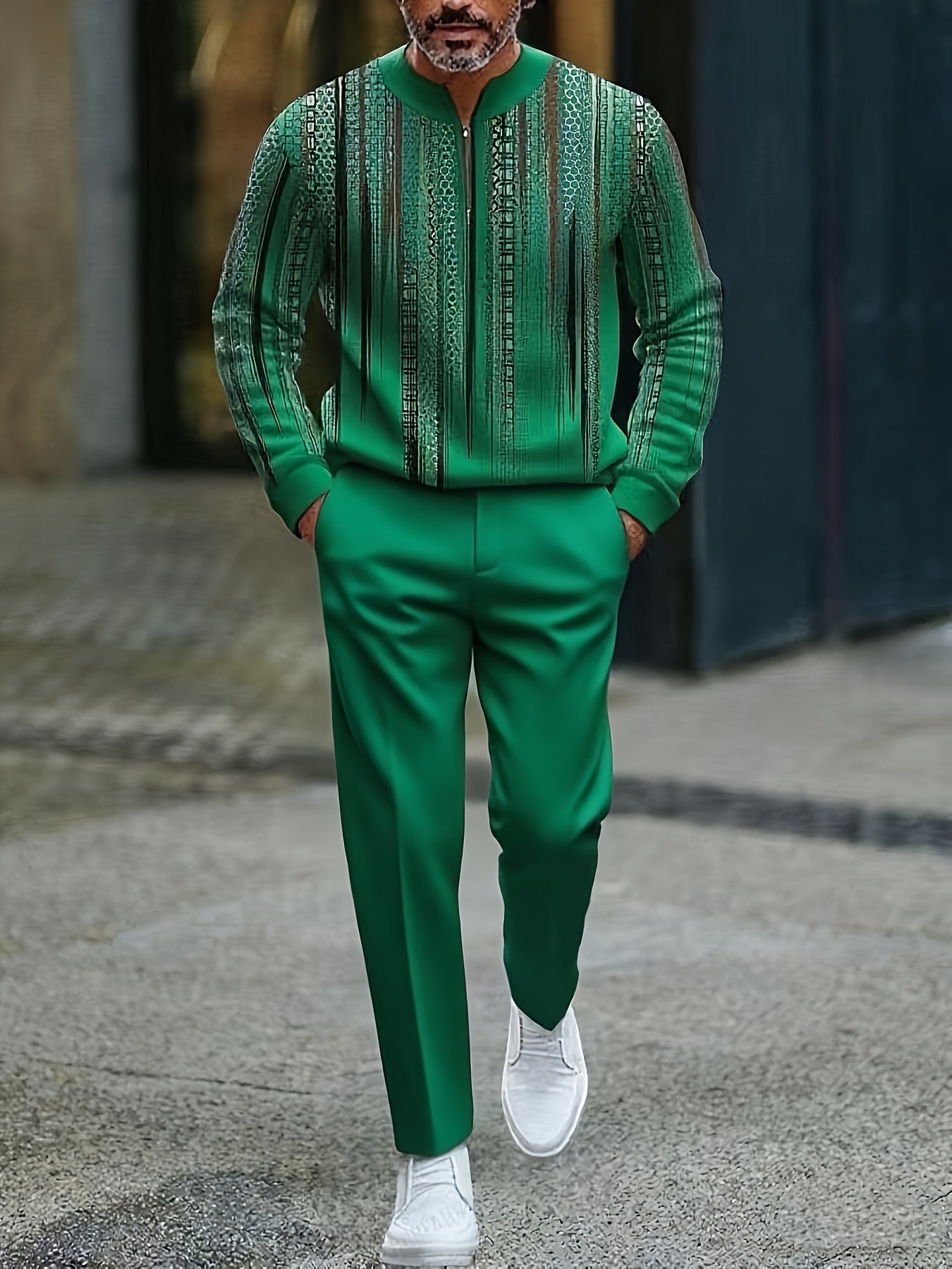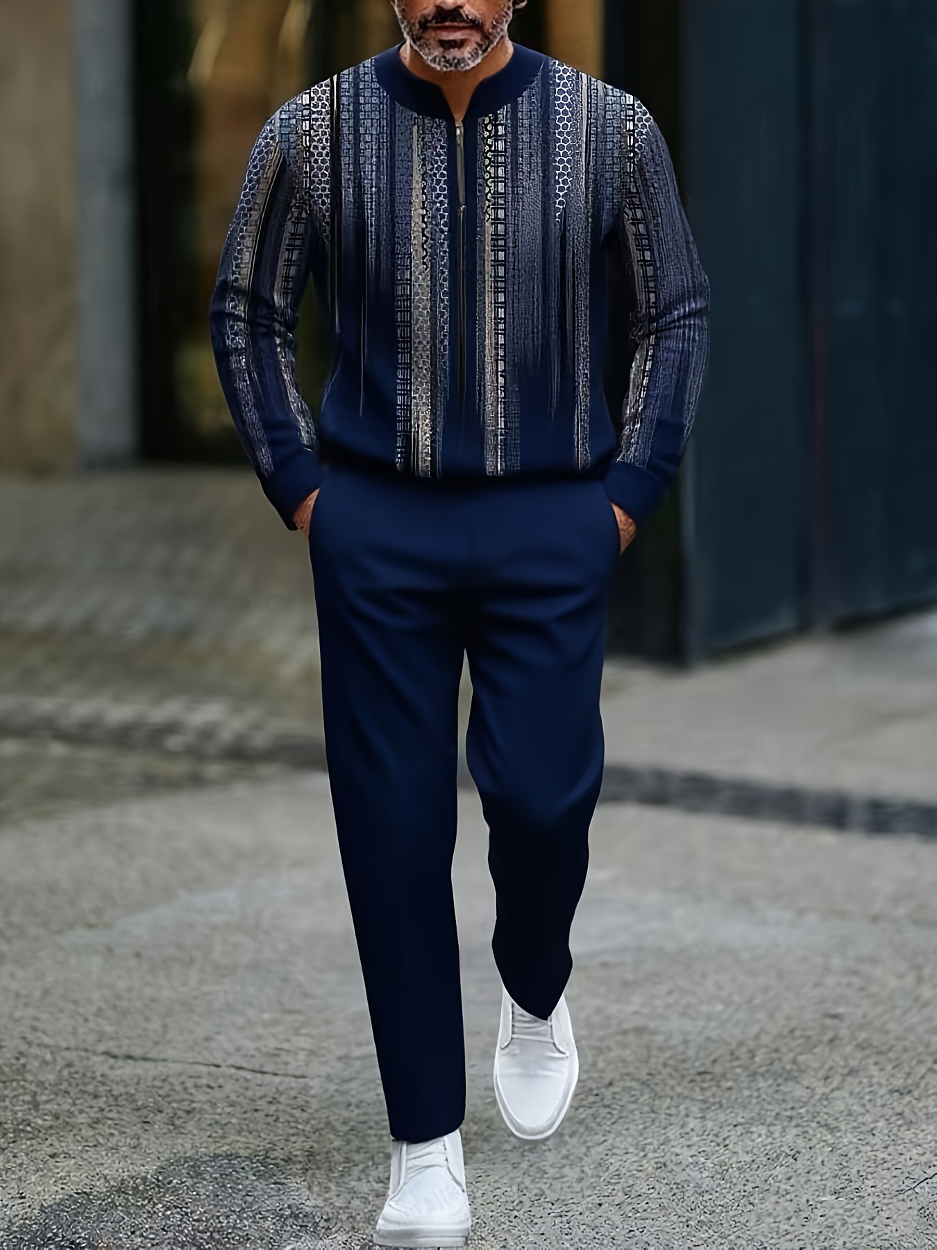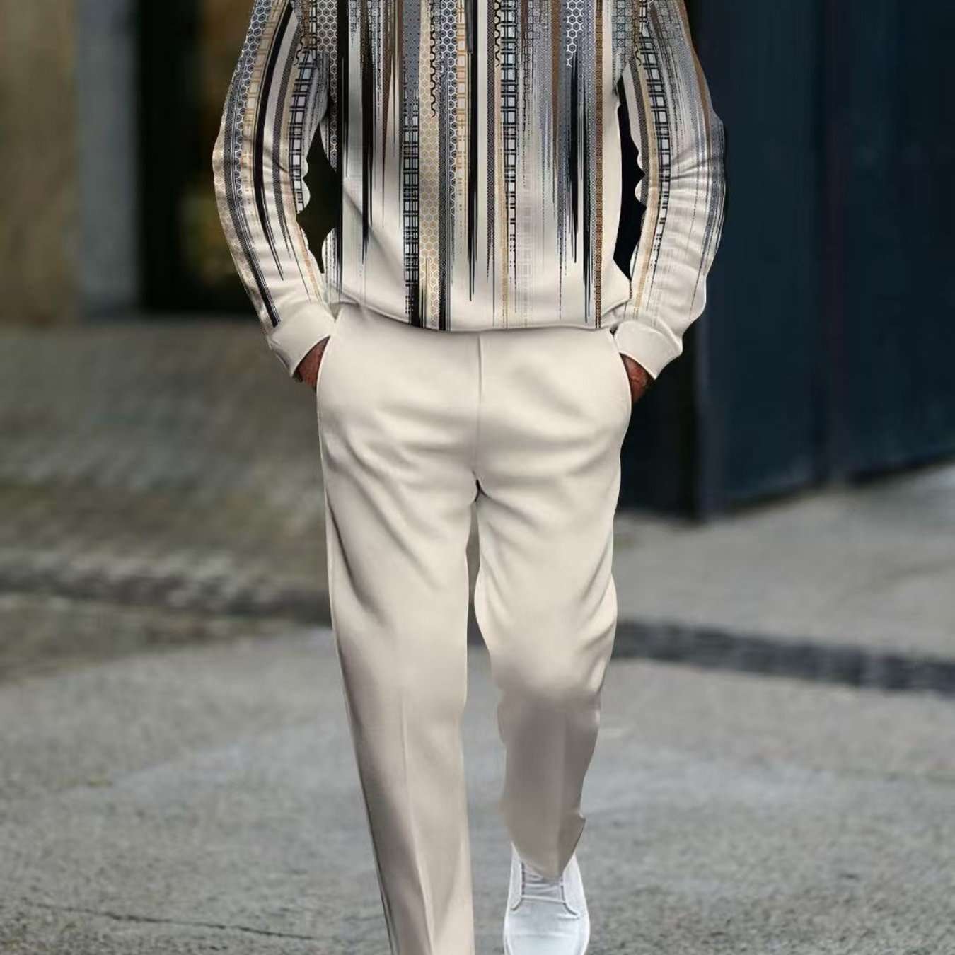 2-Pack | European And American Men'S Long-Sleeved Trousers Sports Suit | 3D Printed Pattern | Half-Open Collar Top | High-Quality Polyester Fabric, Wrinkle-Resistant And Easy to Care for | Suitable for Fitness And Outdoor Cas