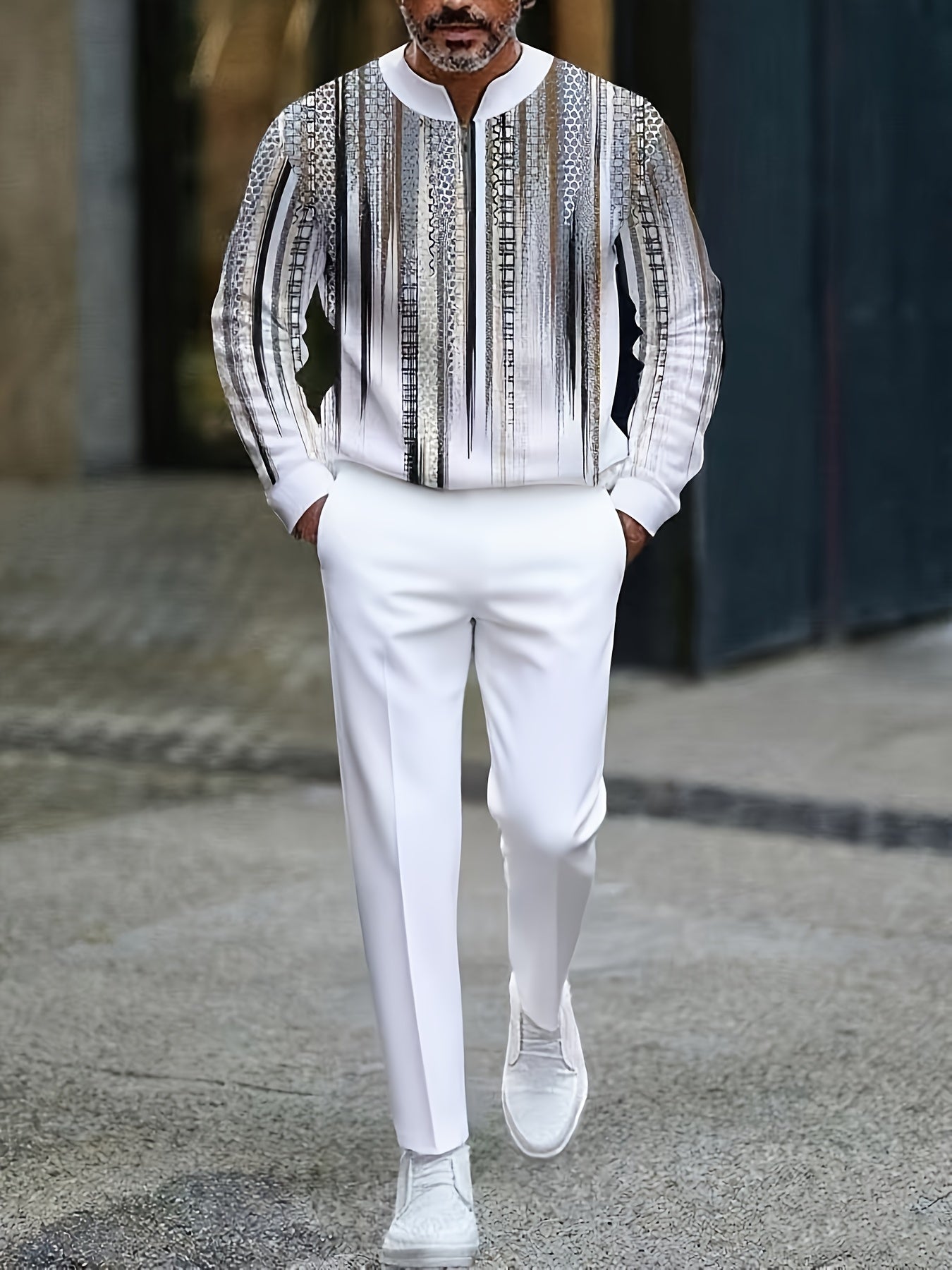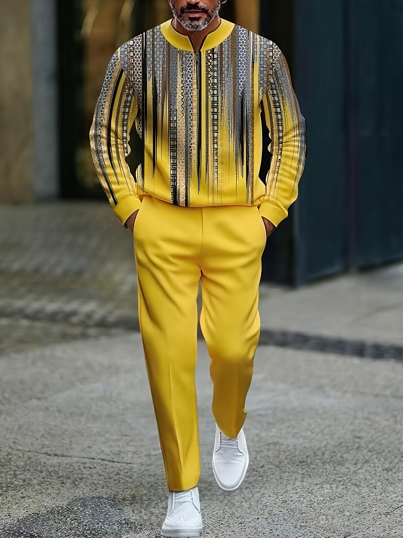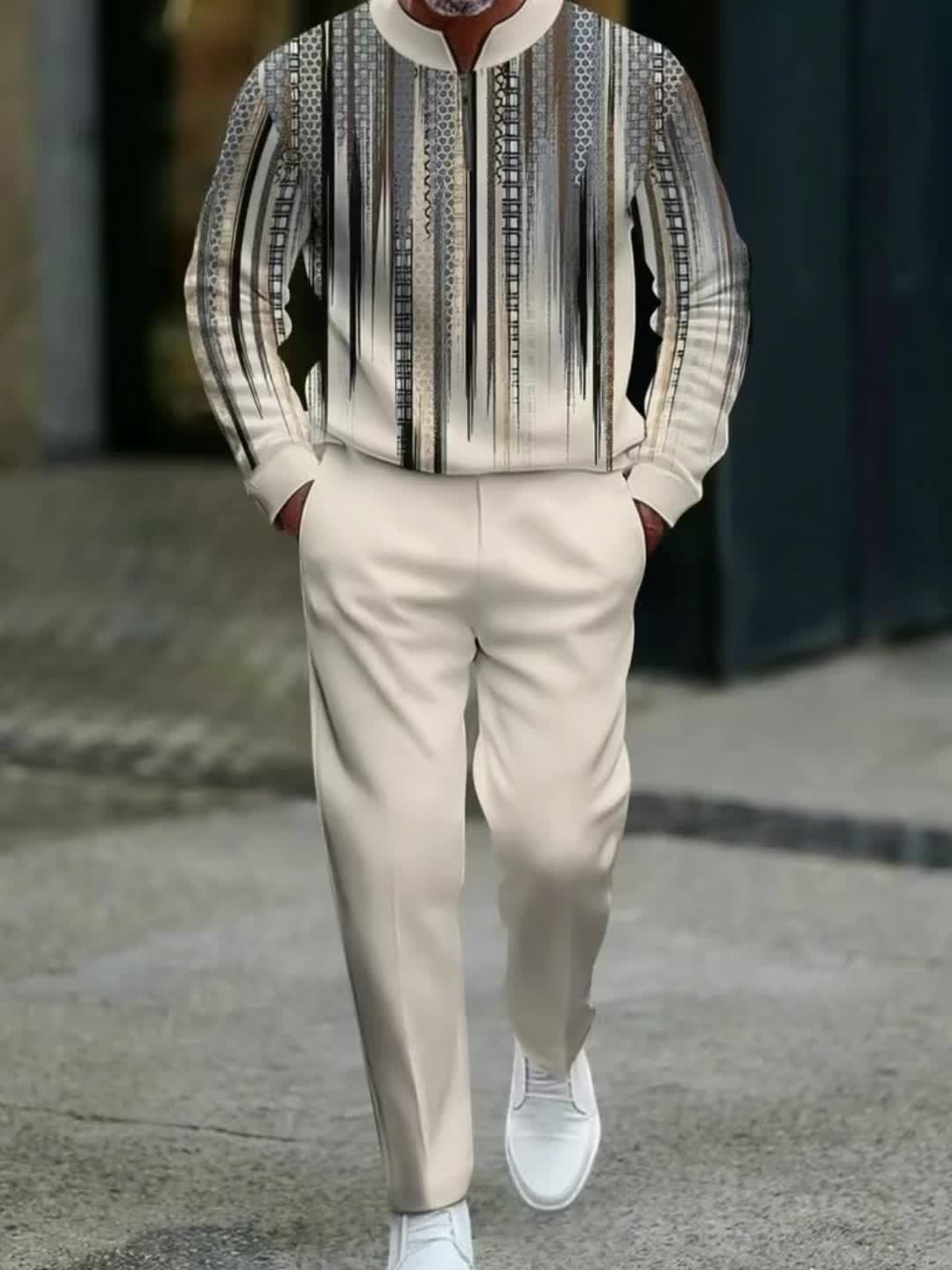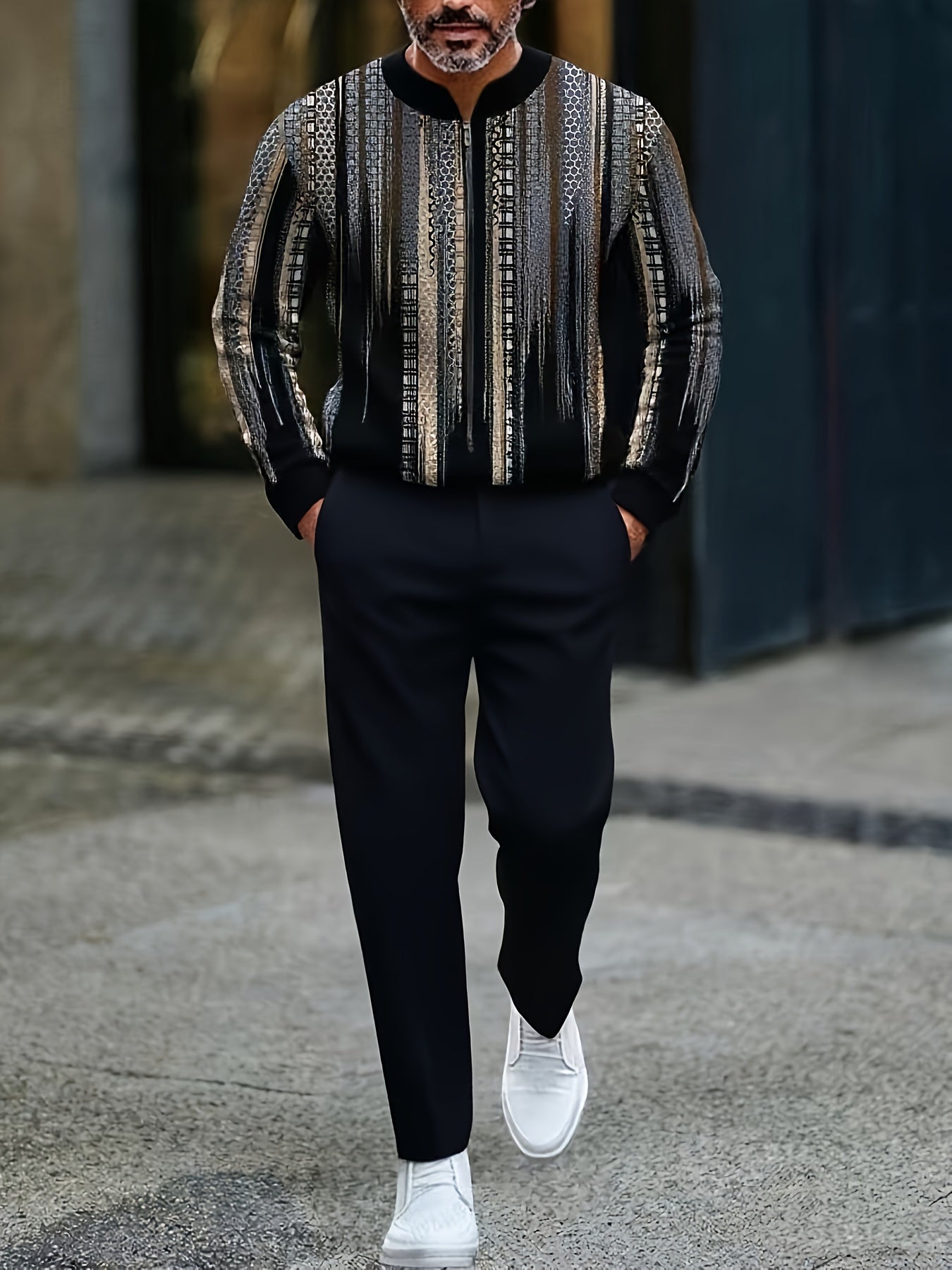 2-Pack | European And American Men'S Long-Sleeved Trousers Sports Suit | 3D Printed Pattern | Half-Open Collar Top | High-Quality Polyester Fabric, Wrinkle-Resistant And Easy to Care for | Suitable for Fitness And Outdoor Cas