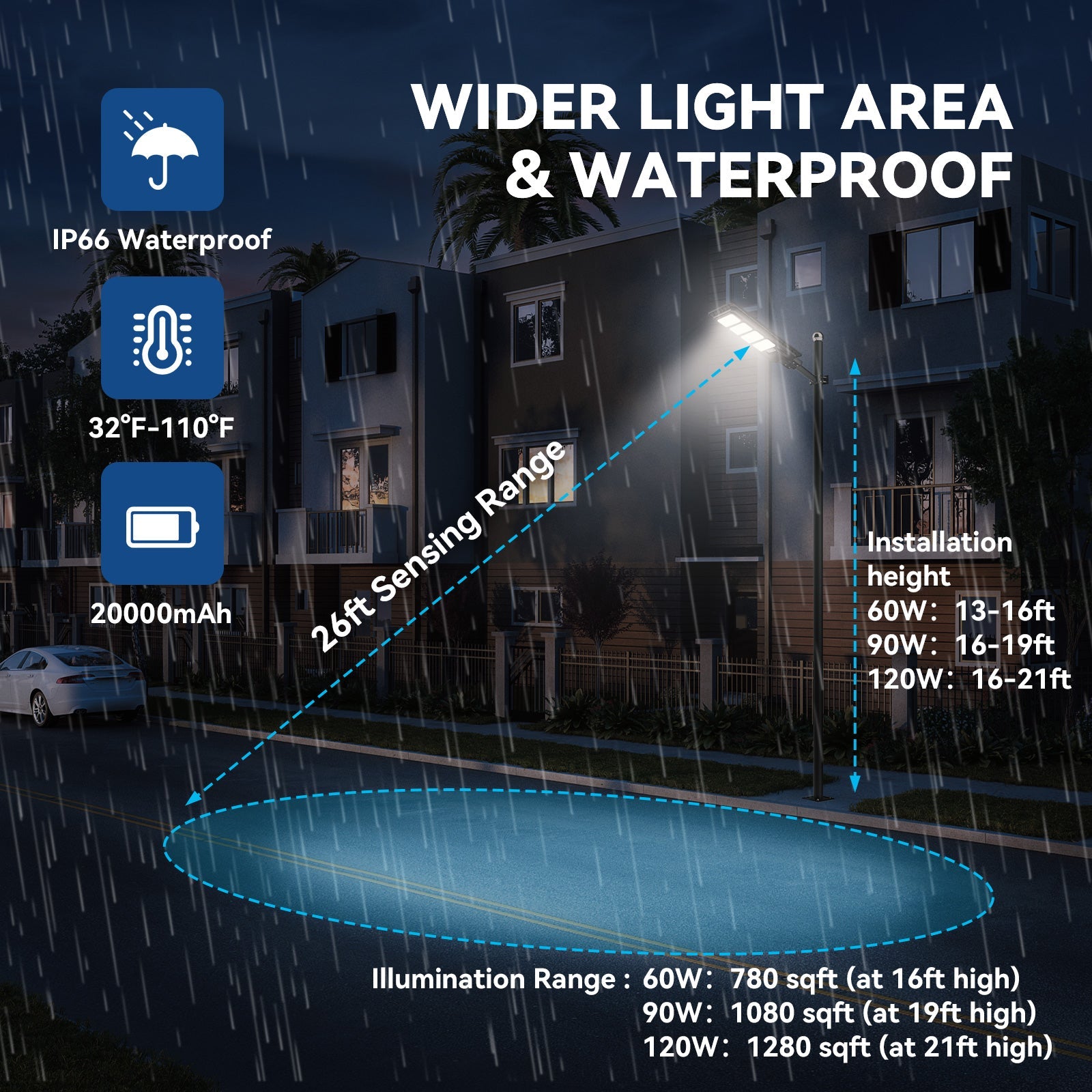 Choose from three power options (60W, 90W, 120W) to match your lighting needs, with coverage ranging from 780 to 1280 square feet depending on model.