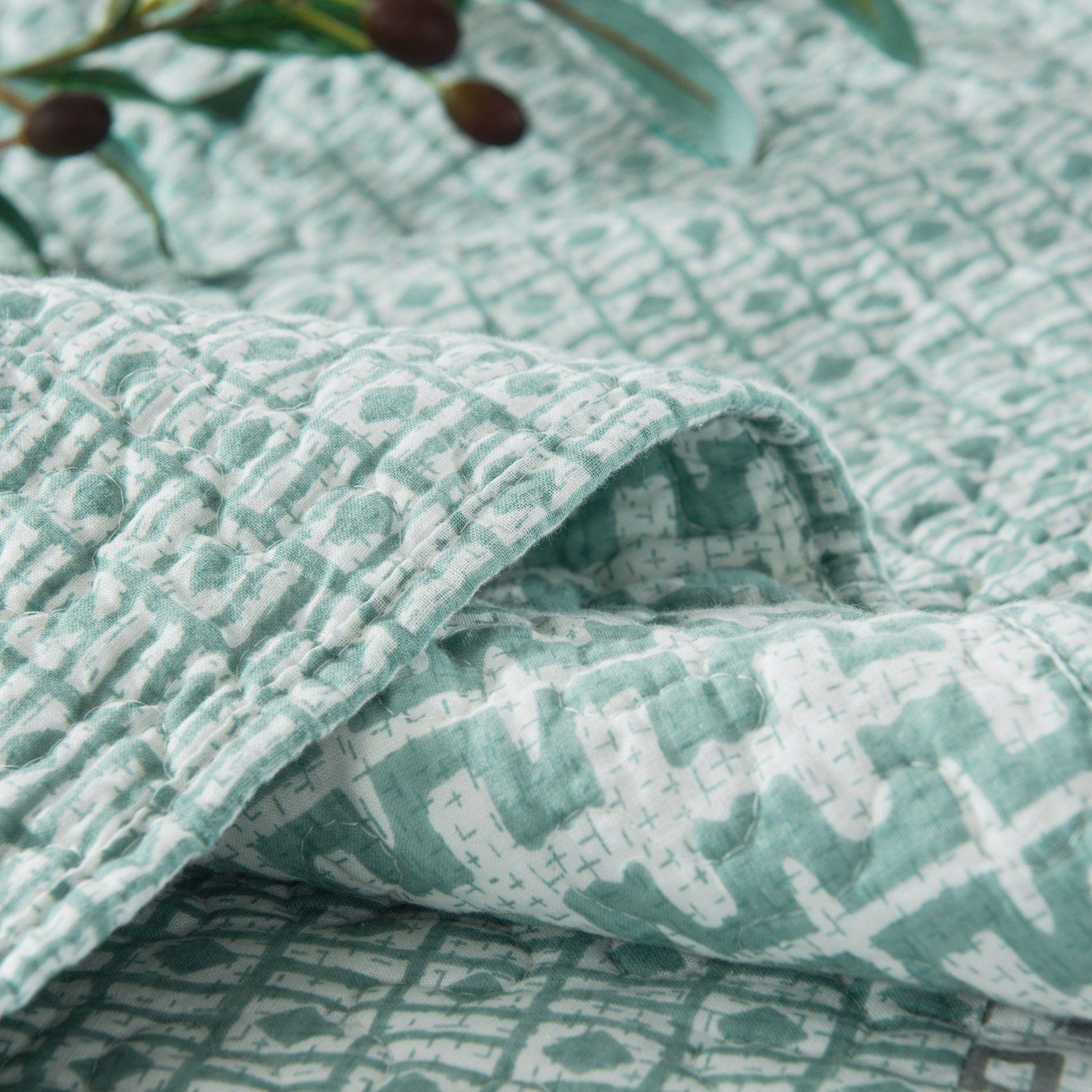 DaDa Bedding Contemporary Mint Green Grey Geometric Cotton Quilted Bedspread Set (JHW-804)