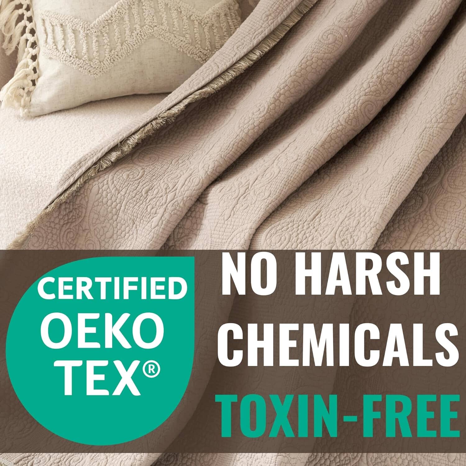 Certified with OEKO-TEX Standard 100, this bedspread ensures green comfort, free from harmful chemicals for peace of mind and restful sleep.