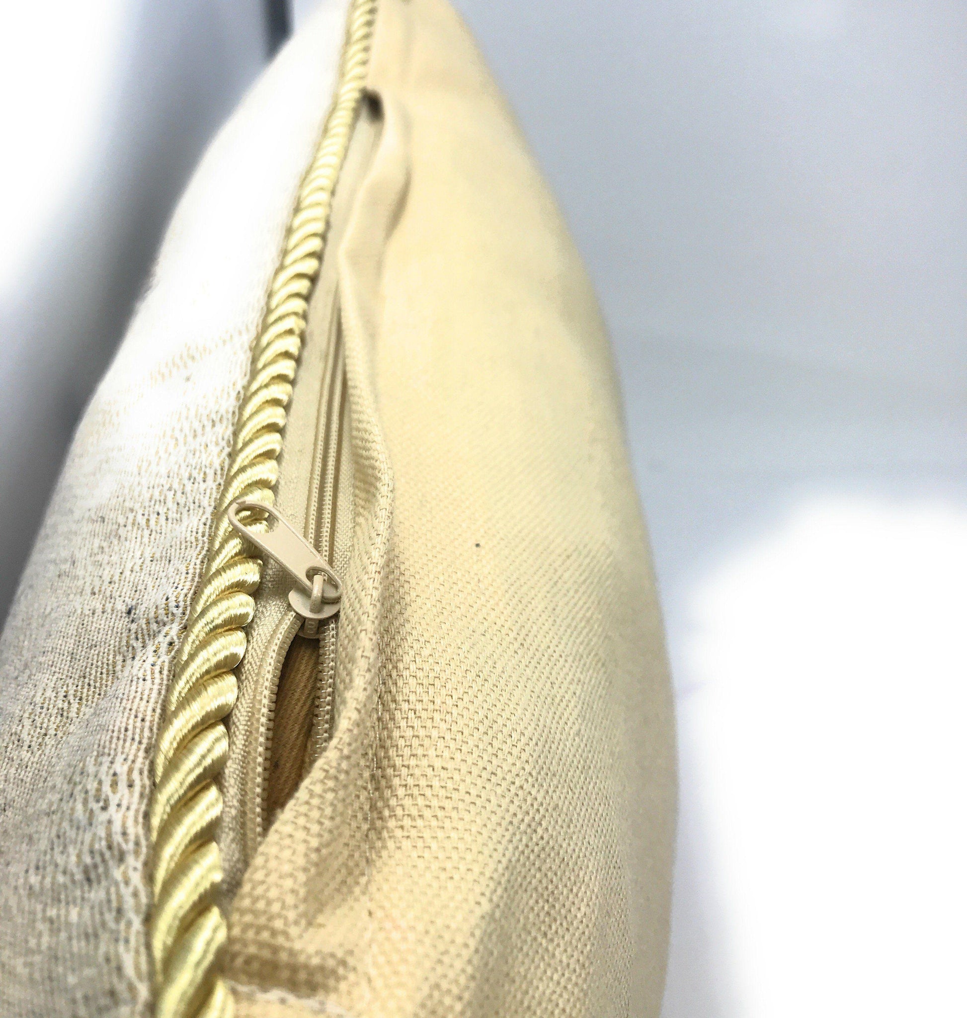Zipper is hidden underneath the detail flap on reverse side, which makes the insertion easy.