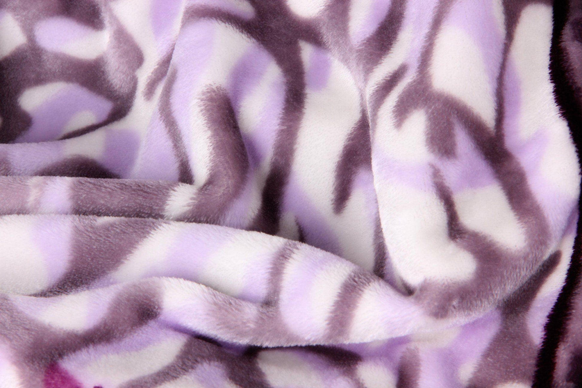 Features a lovely light lavender border all around the blanket with a floral naturalistic styled leaves design mixed with white & dark to light purples giving this blanket a unique look!