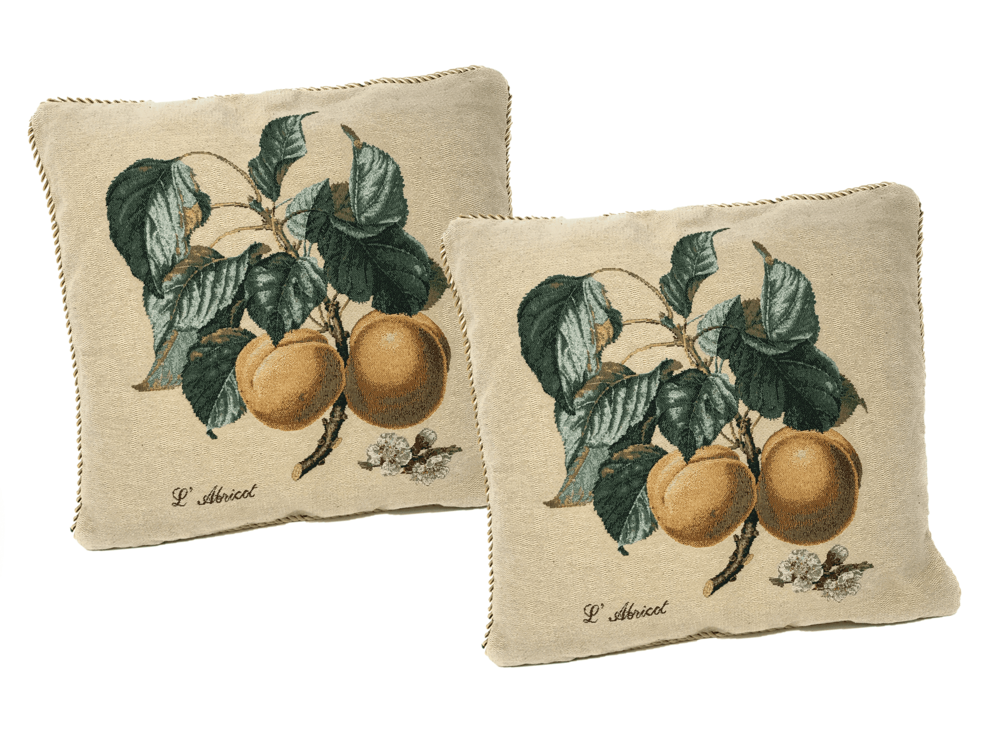 DaDa Bedding Set of 2-Pieces Yellow Apricot Fruits Elegant Tapestry Throw Pillow Covers w/ Inserts - 18" x 18"