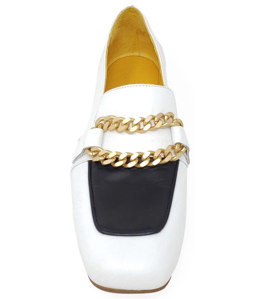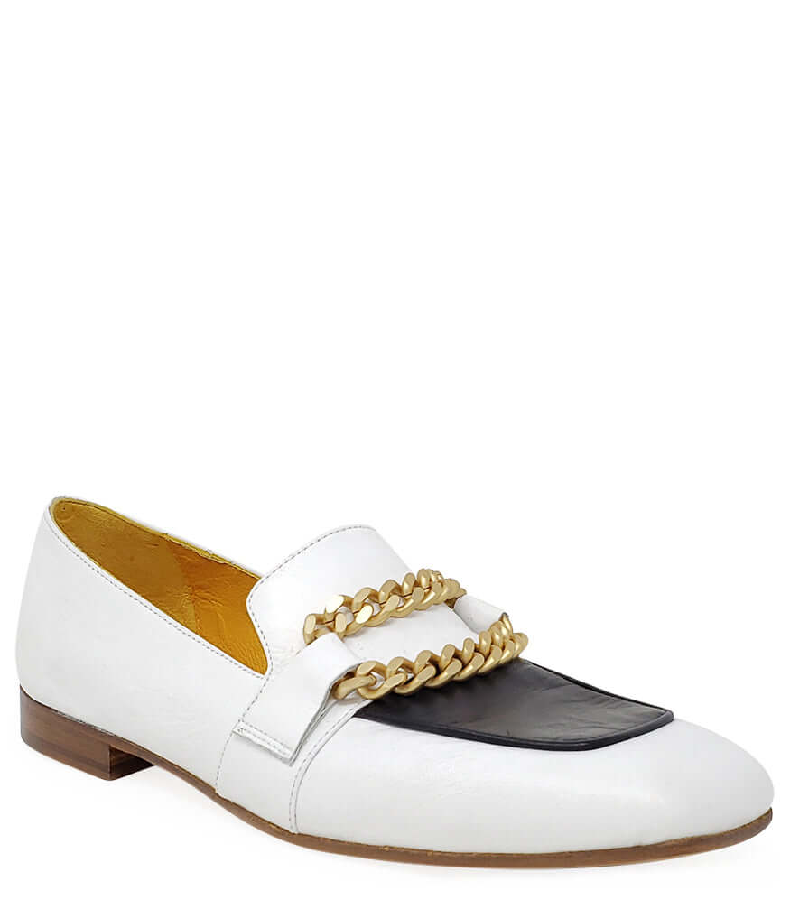 Get ready to fall in love with the Madison Maison Flat Loafer, crafted in Italy from buttery-soft, two-tone leather that fits like a glove. Made in one of Italy's top tanneries using traditional sachetto construction, and an intricate 200-step sole-making process, these loafers deliver the ultimate in comfort and luxury. The flat chain detail adds the perfect touch of glam to take your look from day to night effortlessly.