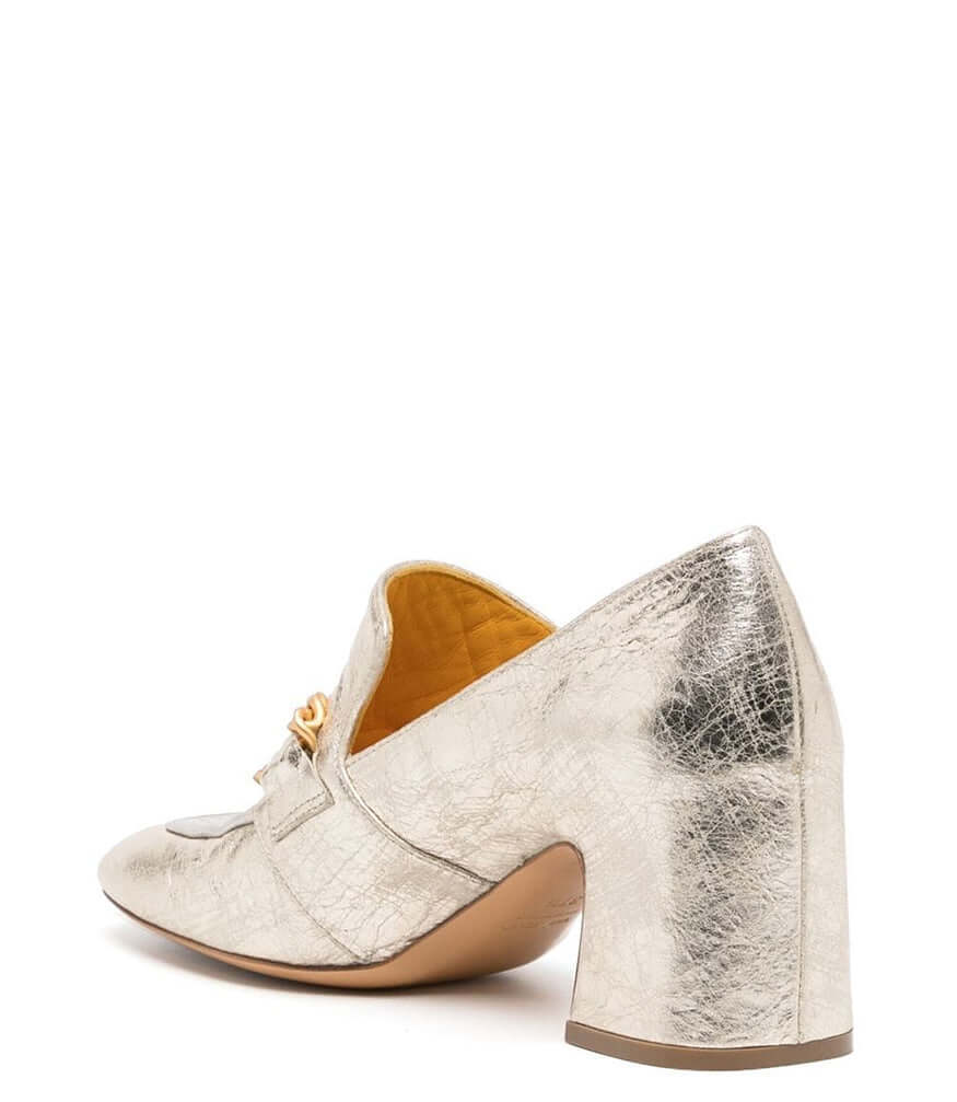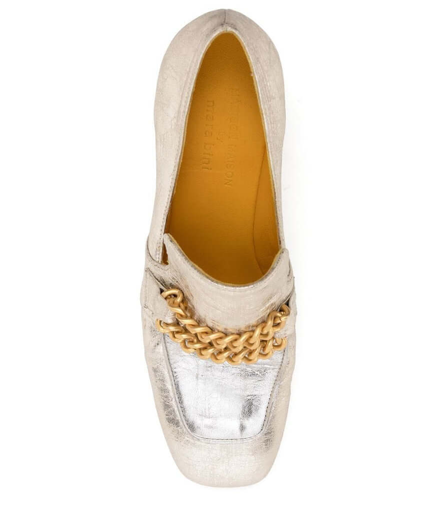 Gold/Silver Leather Mid Heel Loafer W/Chain