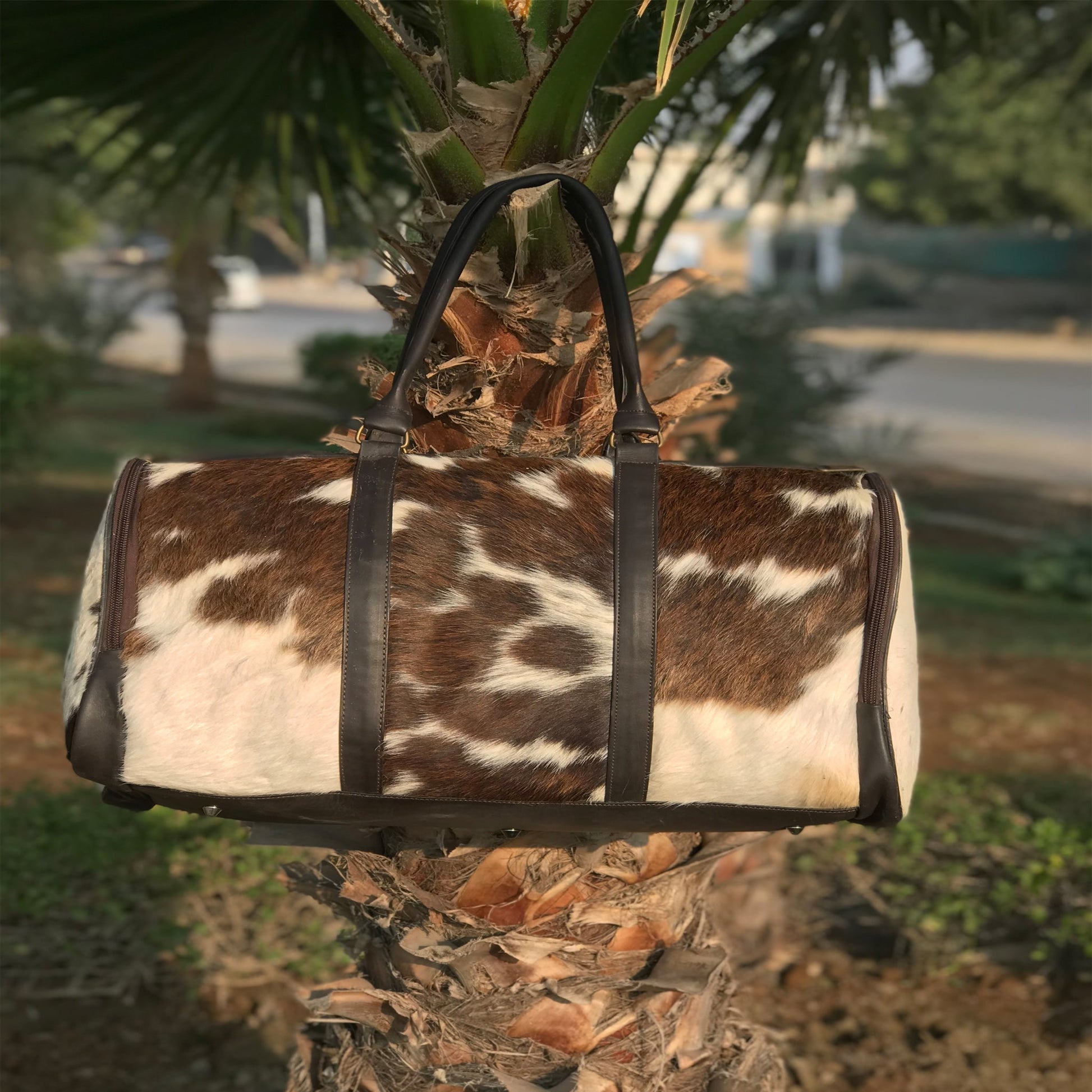 Introducing our stunning handcrafted Medium Cowhide Duffel Bag - the perfect combination of luxury, durability, and style. This one-of-a-kind leather overnight bag is not only a practical choice for business travels but also makes a fantastic unisex gift idea for the discerning individual who values quality and unique design. Our cowhide duffel bag hair on bag animal print bag is meticulously crafted from the finest materials, ensuring a truly exceptional product that will stand the test of time.