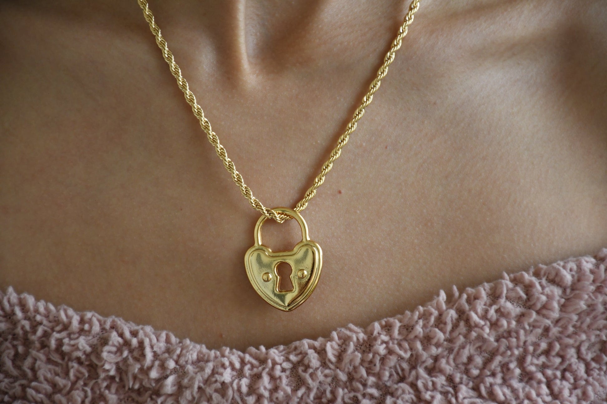 This New Valentines Day Chain is the perfect gift for your loved ones this season. Paired with our open heart choker, this rope chain comes with our Heart Lock Pendant to finish the look.