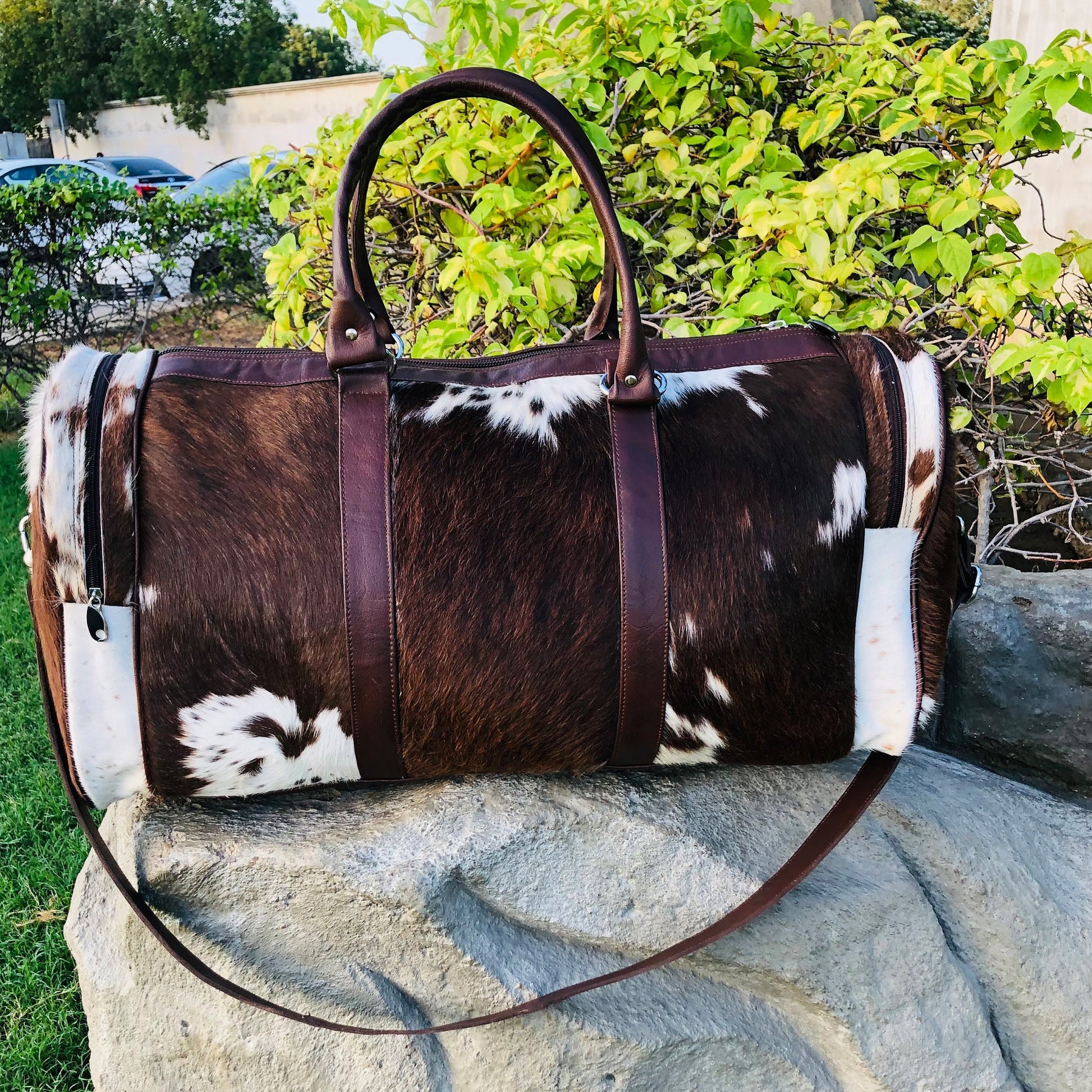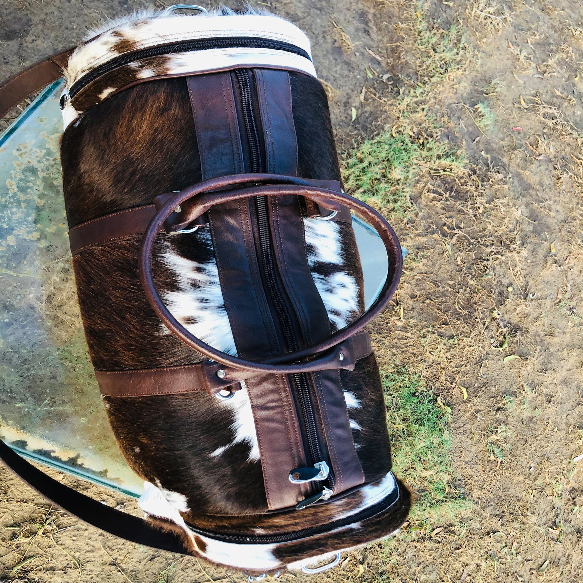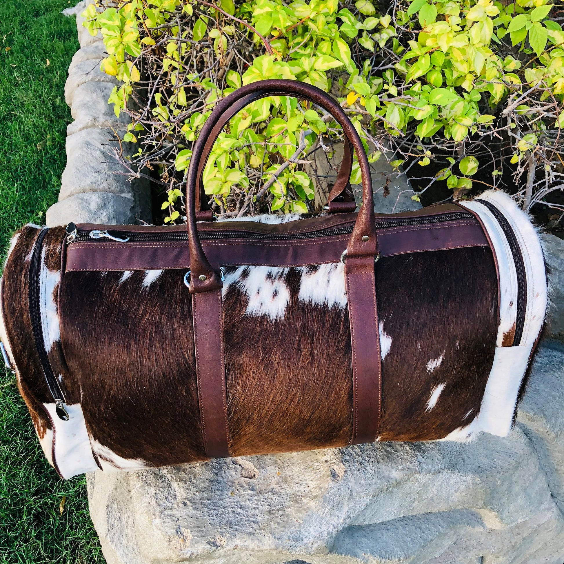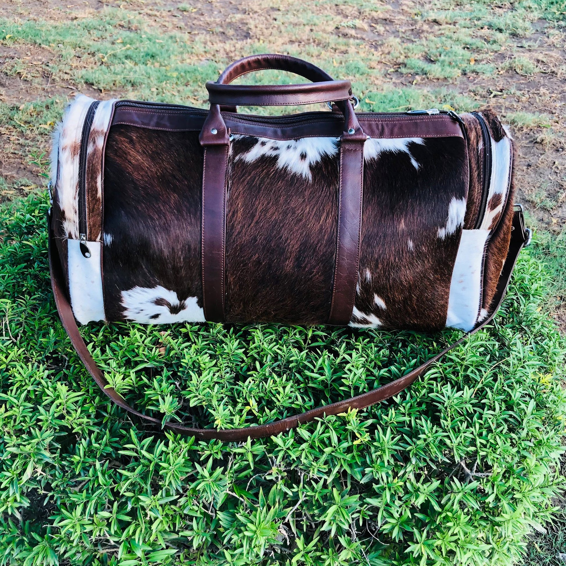 Introducing our stunning, one-of-a-kind cowhide duffel bag, the ultimate statement piece for your next weekend getaway or overnight trip. This luxurious, genuine leather travel tote combines style, functionality, and durability, making it the perfect unique birthday gift for him or her. Handcrafted with love and care, this hair-on animal print bag showcases exceptional craftsmanship and attention to detail, embodying the creativity and authenticity that stands for.