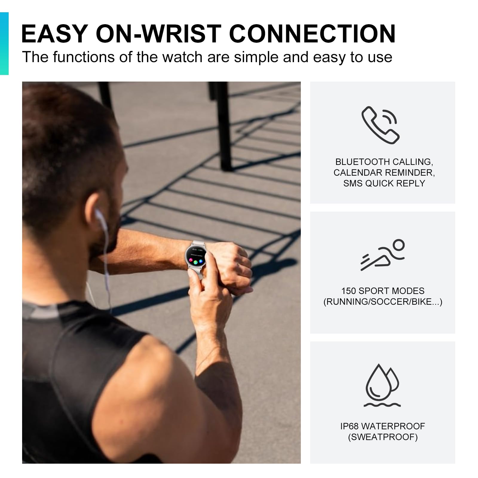 Connected: Bluetooth calls, texts, social notifications. iPhone/Android.