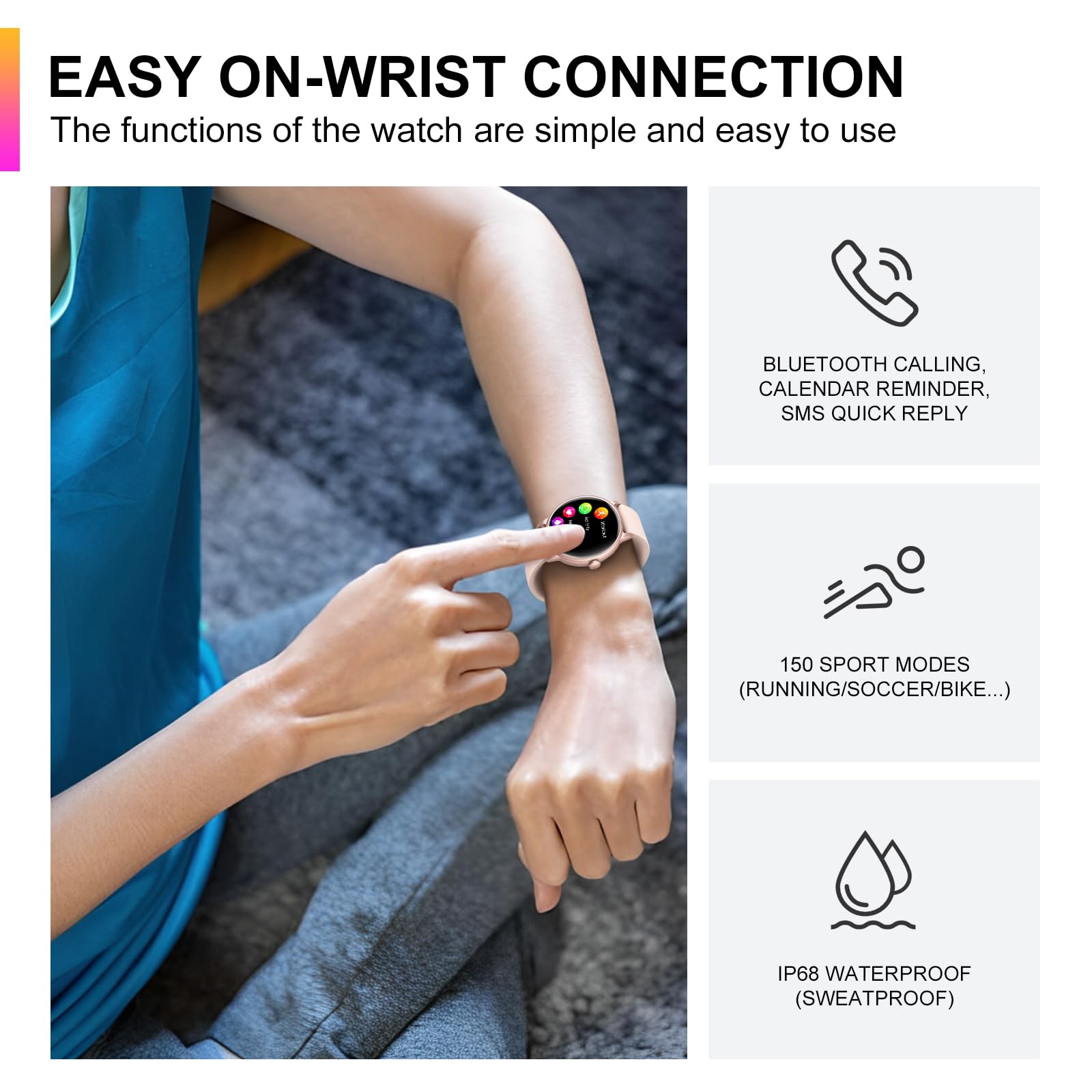 Fitness: 150+ sport modes, splash-proof (not for showering).