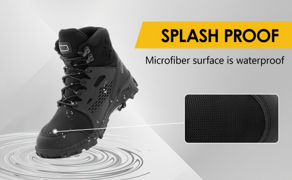 [Waterproof]Composite toe boots feature a sweat-wicking mesh surface with built-in High Quality fabric that seals out water and keeps your feet dry and comfortable. Wraparound feel, high top design supports the ankle.