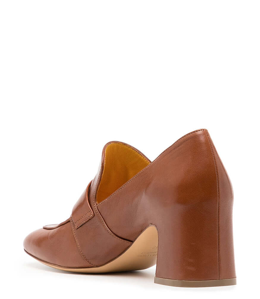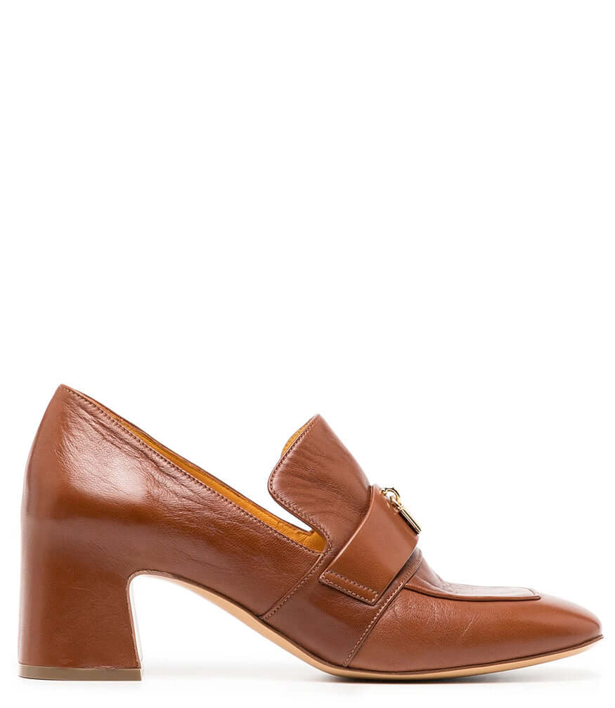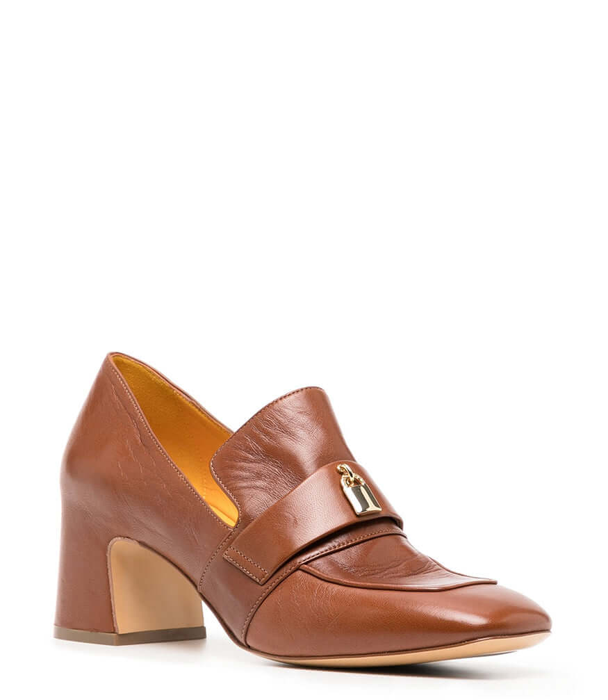Tan Leather Lock Heel Loafer