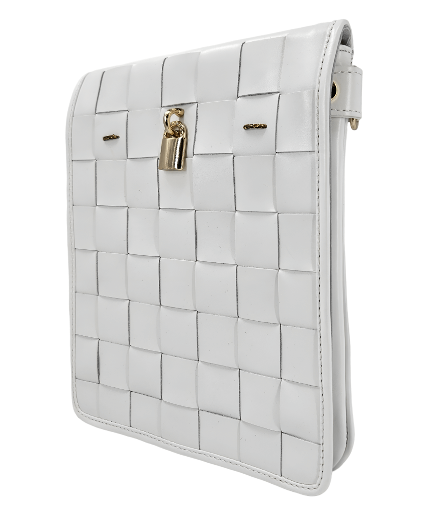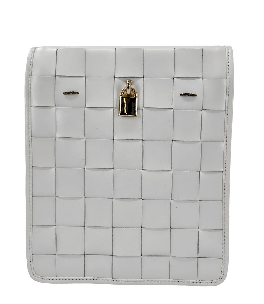 Experience the epitome of Italian craftsmanship with the Woven Crossbody by Madison Maison. Handcrafted in Florence from exquisite calfskin leather, this bag boasts a captivating woven design and a signature Joan Hornig lock. With its adjustable crossbody strap (13-25" drop) and spacious interior (8.5" x 10" x 1.5"), it effortlessly transitions from day to night. Available in classic black, rich chocolate, pristine white, and deep navy blue, the Florence Woven Crossbody is a timeless investment piece that complements any style.