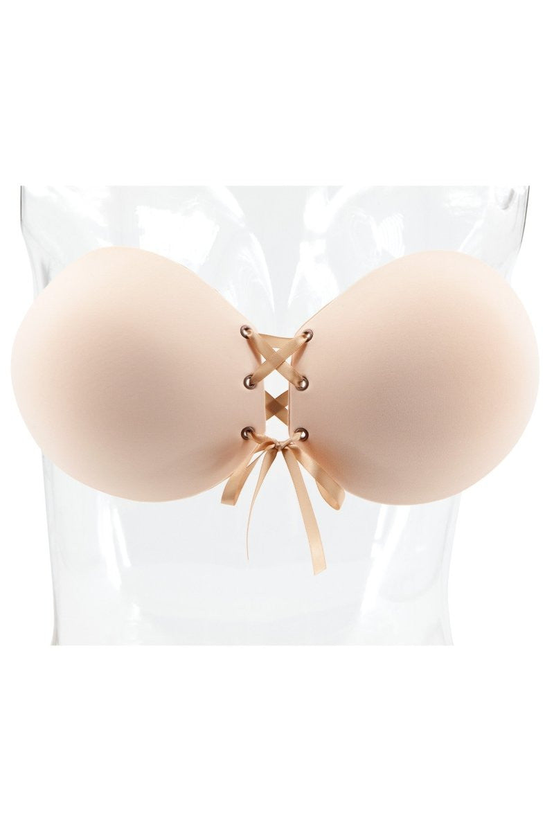 The Close Ties Adhesive Bra redefines support and style with its innovative design. This bra features a strong, skin-friendly adhesive that ensures a secure fit, allowing for freedom of movement without compromising on lift or support. The highlight is its lace-up front tie, which not only adds a decorative touch but also allows for adjustable cleavage enhancement. Perfect for wearing under backless, strapless, or low-cut outfits, this adhesive bra combines functionality. Do not wear for extended periods/overnight. Not recommended for individuals with sensitive skin. Do not apply to open cuts, or sensitive, irritated, or sunburned skin. Discontinue use immediately if signs of rash or irritation appear or discomfort is felt. If you have trouble removing the product, soak in hot water. Be Wicked box packaging